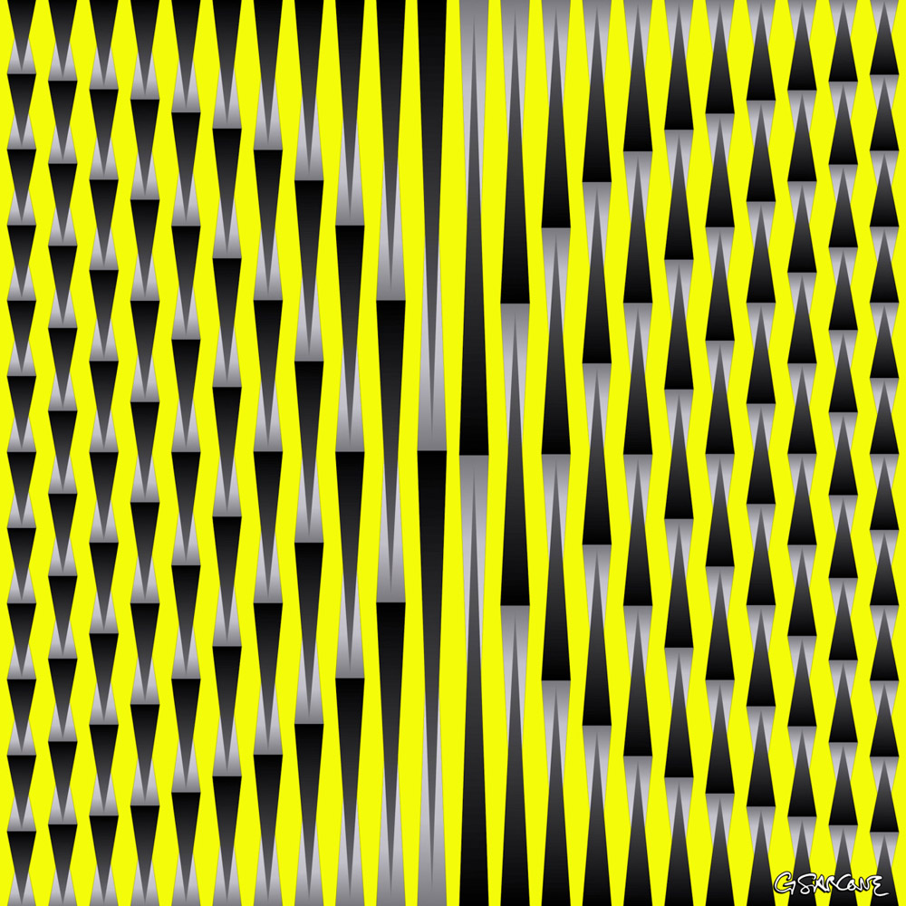 Man’s eyes are not windows, though he’s long imagined they were. They waver, they wander… they can be fooled. I create still Op Art pieces that shimmer and shift — moving like silent GIFs, but only in your gaze.