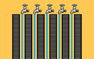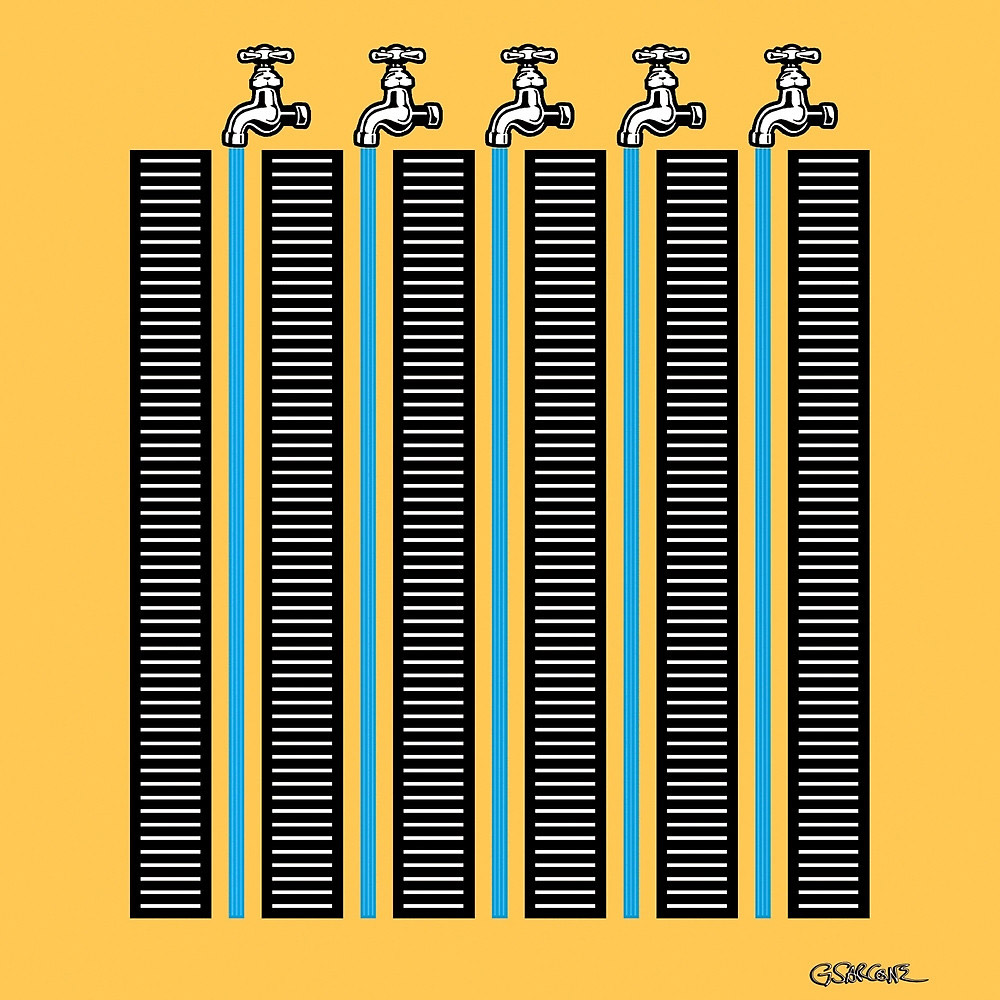 The vertical blue lines seem to twist up and down like a water flow.
