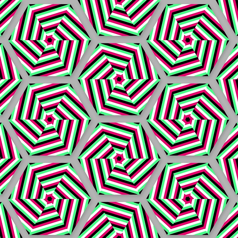 This vibrant geometric design seems to turn on its own — a silent spin conjured by your gaze.