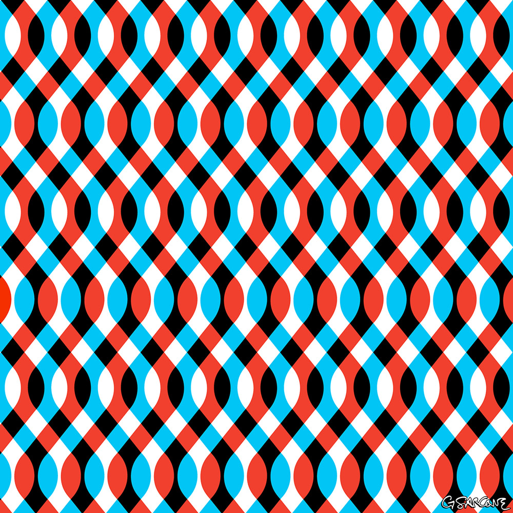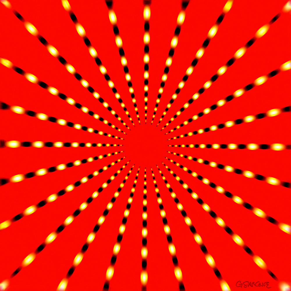 Does the reddish part of this design seem to pulse? Some viewers even find its virtual rhythm syncing with the beat of their own heart.