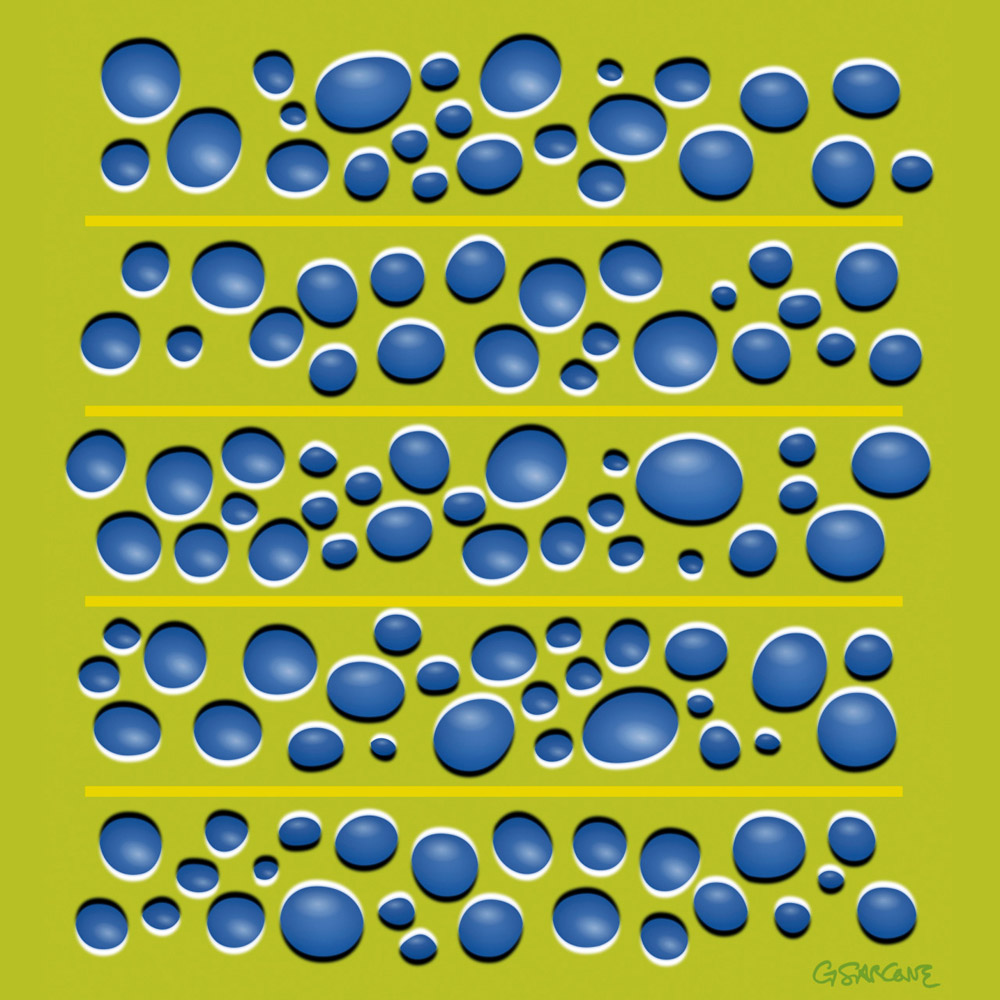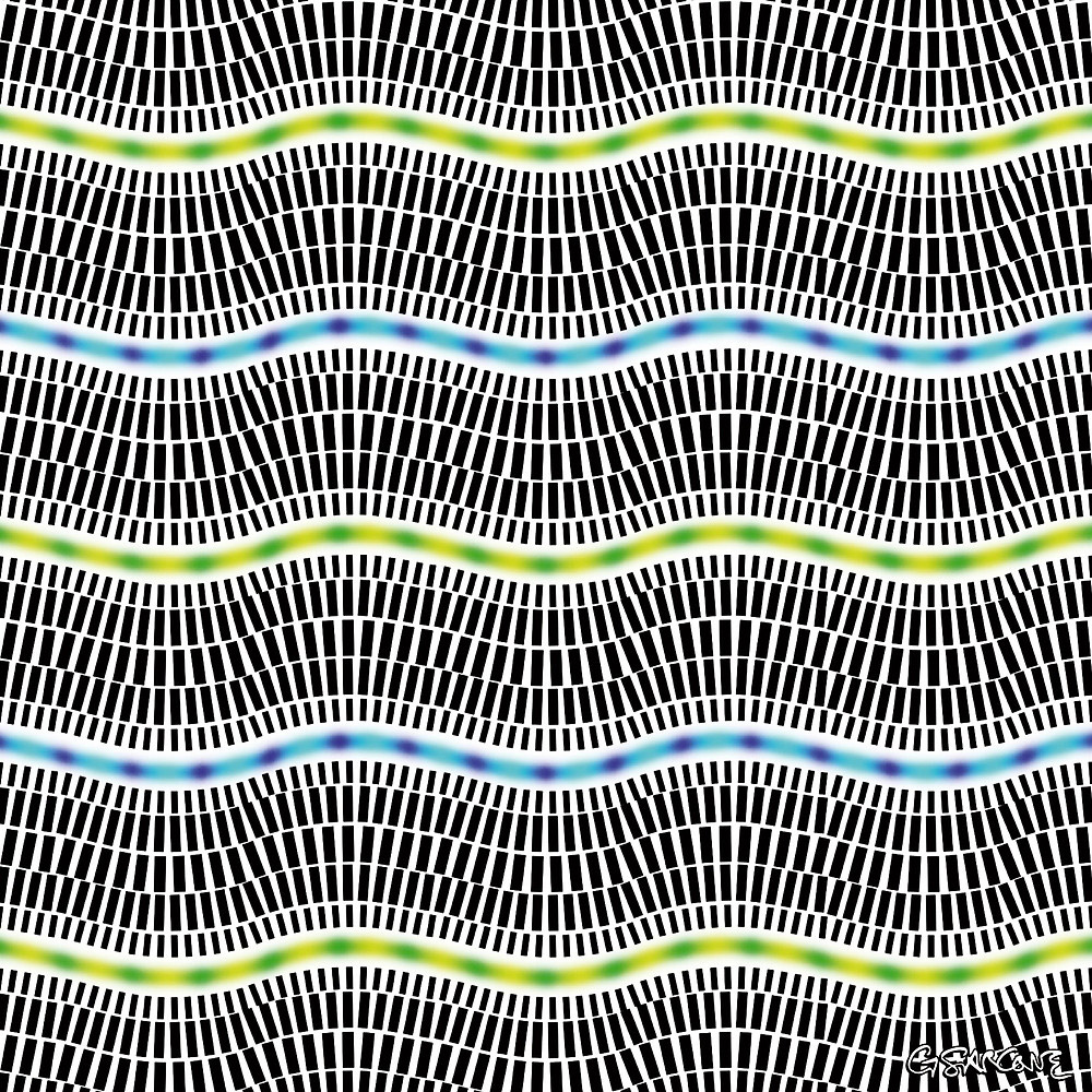 The blue ‘drops’ seem to move up and down and the yellow horizontal lines appear to wave and wobble.